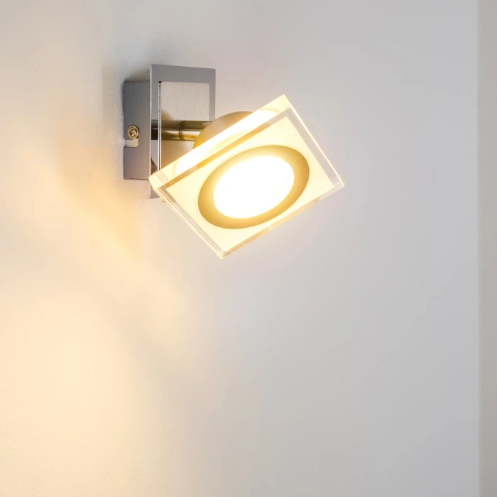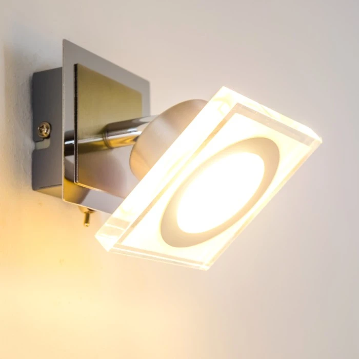 Diese Leuchte kann mithilfe eines herkömmlichen Lichtschalters in 4 Helligkeitsstufen gedimmt werden. Der Spotkopf ist dreh- und schwenkbar.