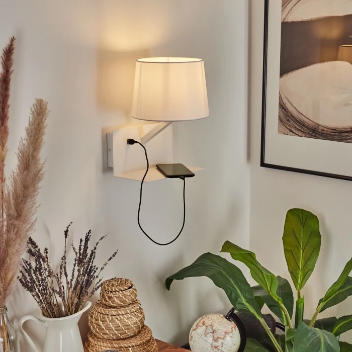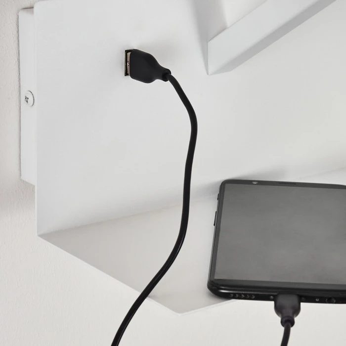 Zusätzlich verfügt diese Leuchte über eine Ablage und einen eingebauten USB-Ausgang.