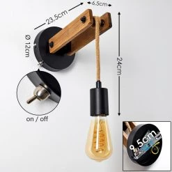 Hofstein Adelboden Wandleuchte Schwarz, Holz dunkel, 1-flammig