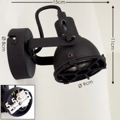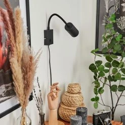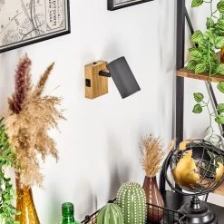 Hofstein Javel Wandleuchte Schwarz, Grau, Holzoptik, 1-flammig